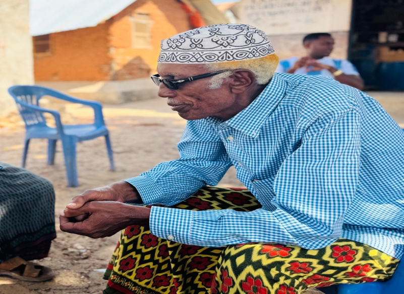 Bakari Mohamed, a fishermen elder from Chuvai Island in the Lower Juba region, watches the waves crash against the eroded shoreline where the sea he once depended on now encroaches on his home. His gaze reflects both memory and loss in a changing climate.